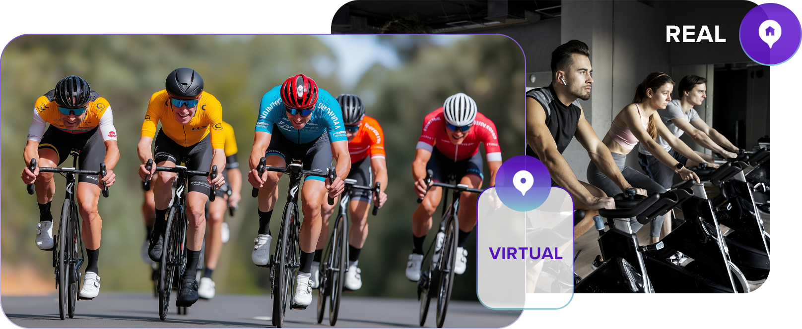 Racing Gym is not a spin class — it's the future of indoor cycling! Ride a real bike, race in a live digital world, and feel the adrenaline.